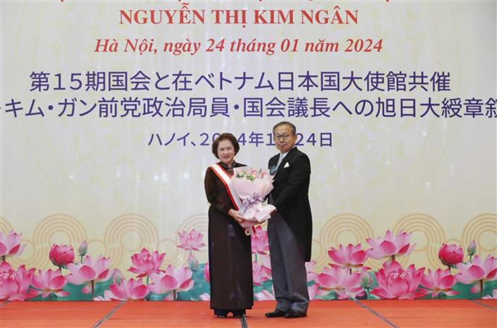 Exprimant sa fierté de recevoir l'Ordre du Soleil Levant du Japon, Nguyên Thi Kim Ngân a souligné que l’Ordre était une grande récompense, témoignant la haute appréciation du gouvernement japonais envers ses contributions durant son mandat. Elle a souhaité que les relations entre le Vietnam et le Japon continuent de se développer dans l'avenir.