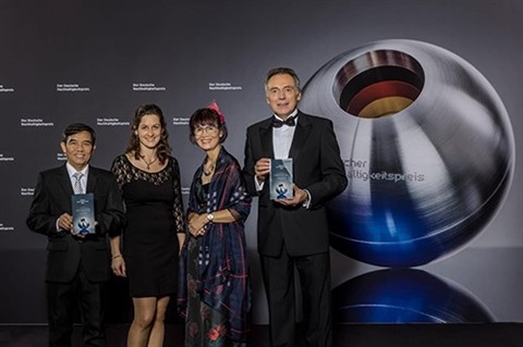 | Le représentant de la ville de Hôi An (première, à gauche) lors de la remise du prix "Développement urbain durable de l’Allemagne 2019". |