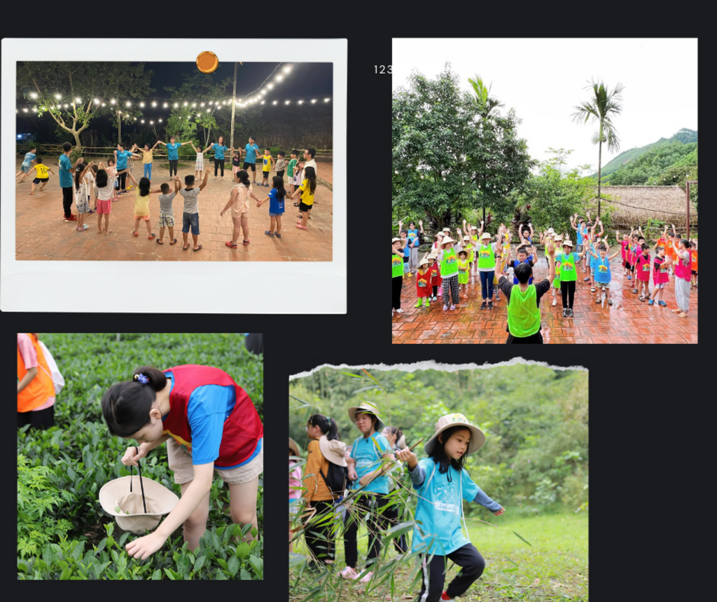 Pour les enfants de 5 à 8 ans, le séjour de trois jours et deux nuits intitulé “Nay mâm” (Germination) ou de cinq jours et quatre nuits “Kho bau dân gian” (Trésor folklorique) sont adaptés à leur capacités physiques et psychologiques. Chaque jour, les enfants se familiarisent avec la nature et les plantes, observent des animaux qu’ils n’ont jamais eu l’occasion de rencontrer en ville, et mettent en pratique des techniques de survie de base comme allumer un feu, monter une tente, cuire du riz ou encore se repérer en forêt.