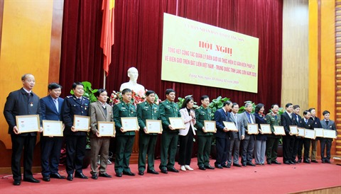 | Des individus honorés lors de la conférence-bilan sur la frontière terrestre Vietnam - Chine, le 31 décembre à Lang Son (Nord). |