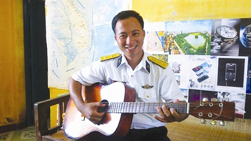 | Le commandant Cân Ngoc Son joue de la guitare en pensant à son amoureuse |