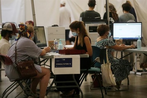 | Un centre de vaccination à Perpignan, le 18 juillet. |