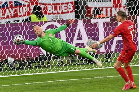 Décomplexés, disciplinés à défaut d'être créatifs, les Danois ont jeté un froid après trente minutes quand l'intenable Mikkel Damsgaard, étoile montante des Rouge et Blanc à 21 ans, a réalisé un coup franc direct que Pickford n'est même pas parvenu à effleurer (30e).