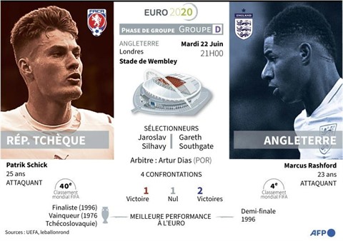 Sans jouer, Anglais et Tchèques - comme la France - ont décroché leur billet pour les huitièmes dès lundi soir. Leur duel en soirée à Wembley a donc perdu un peu de sa tension alors que les deux équipes sont assurées de passer avec les 4 points déjà engrangés, avec une différence de buts favorable à Patrik Schick et ses partenaires (+2 contre +1). L'éventuel vainqueur d'Ecosse-Croatie les accompagnera en huitièmes mais un nul entre les deux actuels derniers (1 pt chacun) serait fatal aux deux équipes.