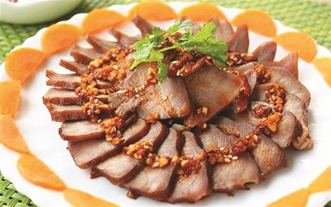 - Portez à ébullition la langue de porc pendant 15 minutes. En retirez la peau et coupez-la en deux selon la longueur. Bien nettoyez.