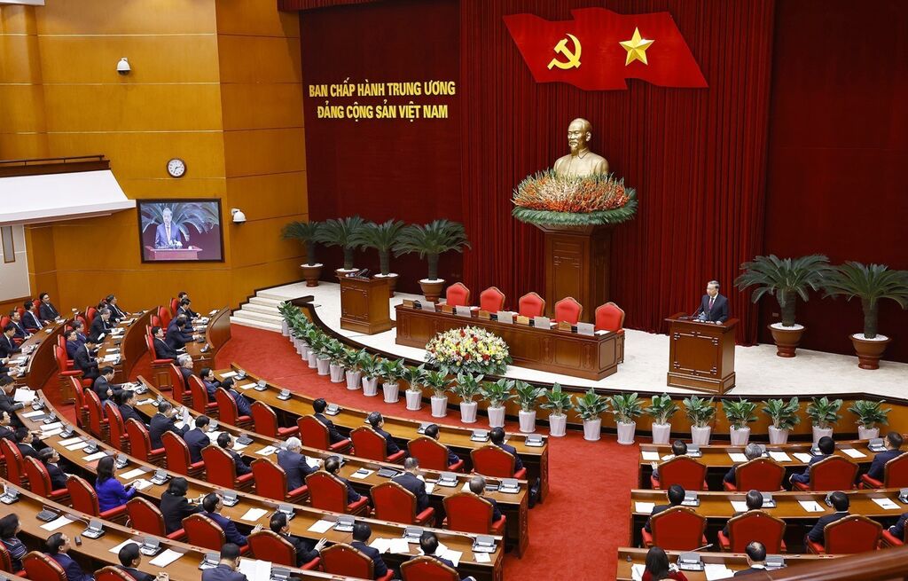 | Lors de la clôture du 15e plénum du Comité central du Parti communiste du Vietnam (XIIIᵉ mandat) en janvier 2025. |