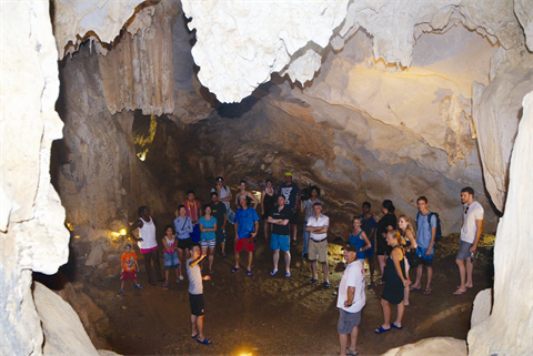 | Les touristes étrangers découvrent une caverne sur le site de la baie de Ha Long, province de Quang Ninh (Nord). |