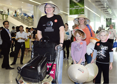 | Sourire aux lèvres, ils sont parmi les premiers touristes étrangers à avoir posé les pieds à Hô Chi Minh-Ville le 1er janvier 2015. |