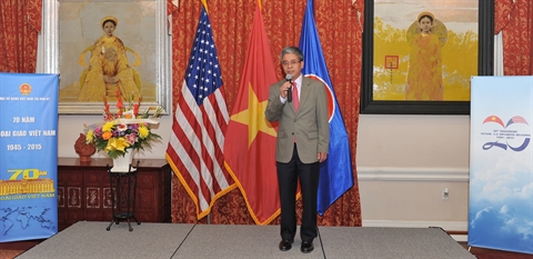 | Pham Quang Vinh lors de la célébration du 70e anniversaire de la fondation de la diplomatie vietnamienne, le 26 août à Washington. |