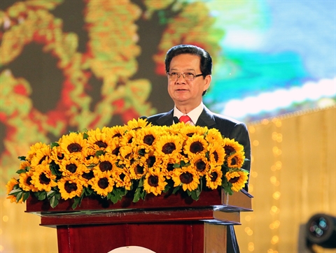 | Le Premier ministre Nguyên Tân Dung prononce un discours lors d'un meeting en l’honneur des 40 ans de la libération du Sud et de la réunification nationale, le 28 avril à Cân Tho (delta du Mékong). |