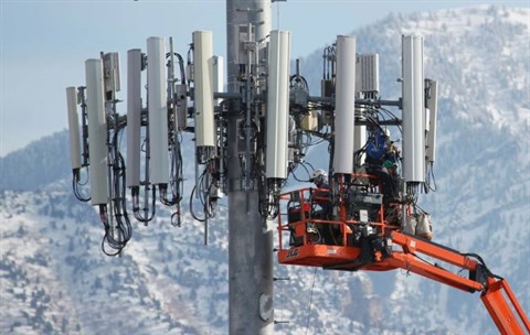 | Travaux sur une antenne pour la 5G le 10 décembre dans l'Utah, aux États-Unis. |