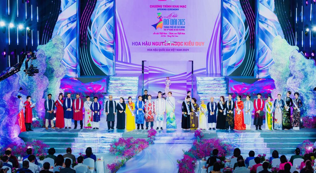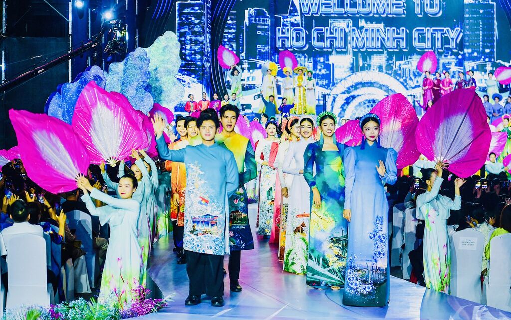 Le moment fort de la soirée d’ouverture a été le programme artistique composé de trois chapitres. Le premier, intitulé "Áo dài và Khúc hát những dòng sông" (L'áo dài et le chant des rivières), présentait six collections avec plus de 70 modèles de cette tunique traditionnelle des femmes vietnamiennes. Il retrace l'histoire de la formation et du développement de la région de Saigon - Gia Định (ancien nom de l'actuelle Hô Chi Minh-Ville), liée au fleuve Saigon, chaque áo dài étant une œuvre d’art, imprégnée d’identité culturelle et racontant l’histoire de la localité.