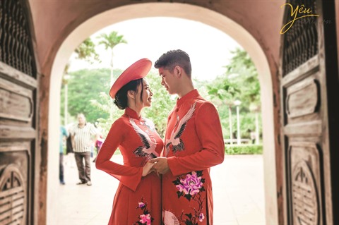 | L’áo dài de mariage est incontournable dans les photos des futurs mariés. |