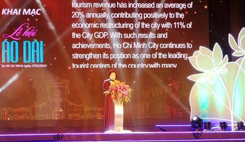 | Le vice-président du Comité populaire de Hô Chi Minh-Ville, Mme Nguyên Thi Hông, lors de l’ouverture de la Fête de l’ao dài 2015. |