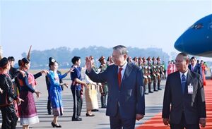 Le secrétaire général Tô Lâm arrive à Vientiane, entamant sa visite d’État au Laos