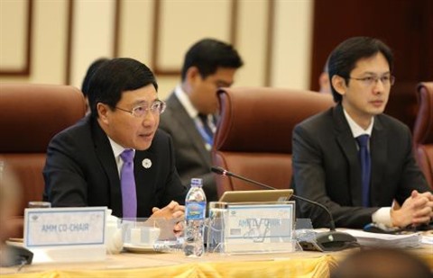 | Le vice-Premier ministre et ministre vietnamien des Affaires étrangères, Pham Binh Minh, lors de la 29e conférence ministérielle de l'APEC (AMM) à Dà Nang. |