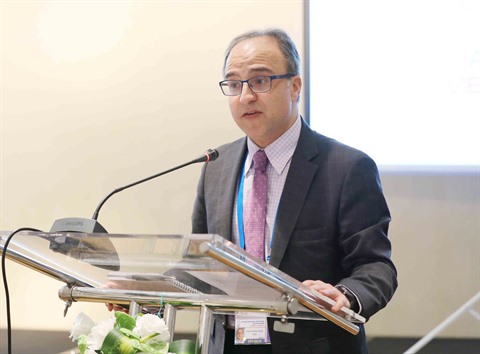 | Felipe Lopeandia, de la Direction générale des relations économiques internationales du ministère des Affaires étrangères du Chili, au séminaire. |