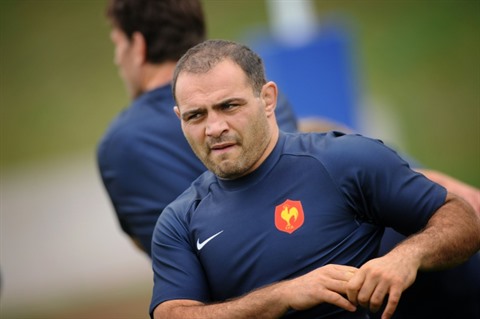 | Raphael Ibanez, alors entraîneur et capitaine du XV de France lors d'une séance d'entraînement, le 10 octobre 2007 à Marcoussis. |