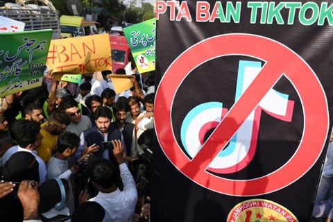 | Manifestation pour demander l'interdiction de TikTok au Pakistan, le 18 juin à Lahore. |