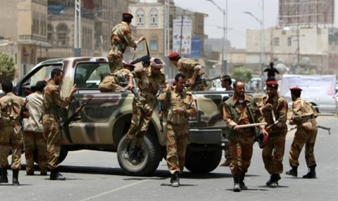 | Des soldats yéménites opposés au retour du Ali Abdullah Saleh au pouvoir dans les rues de Sanaa, au Yémen, le 8 juin 2011. |