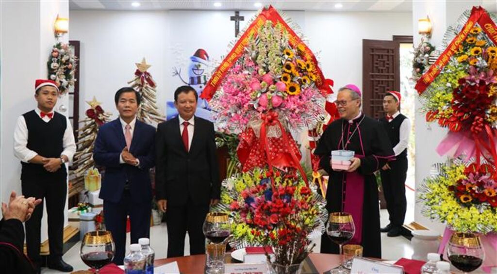 Le vice-ministre de l’Intérieur, Vu Chiên Thang, a présenté des fleurs et souhaité à l’archevêque Nguyên Chi Linh, aux dignitaires ecclésiastiques, aux religieux et compatriotes catholiques, une saison de Noël paisible, heureuse et pleine de grâce du Seigneur Jésus-Christ.