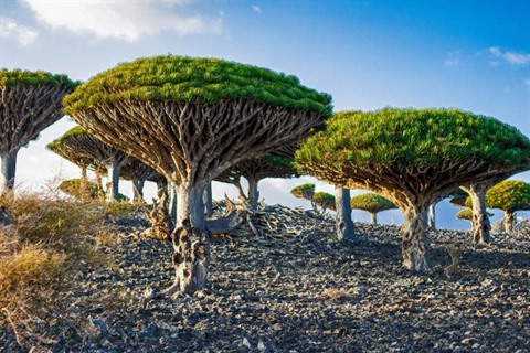 | Des dragonniers de Socotra, des arbres typiques de cette l'île yéménite. |