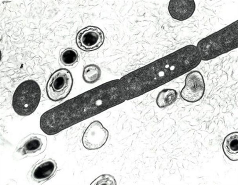 | Image fournie par le département de la Défense américain du bacille de l'anthrax. |