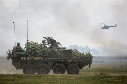 Les États-Unis commandent un bataillon multinational de l'OTAN en Pologne alors que le Canada, la Grande-Bretagne et l'Allemagne restent à la tête des bataillons similaires déployés dans les pays baltes voisins, en Lituanie, Lettonie et Estonie où les manoeuvres Saber Strike (Coup de sabre) doivent se tenir également.
