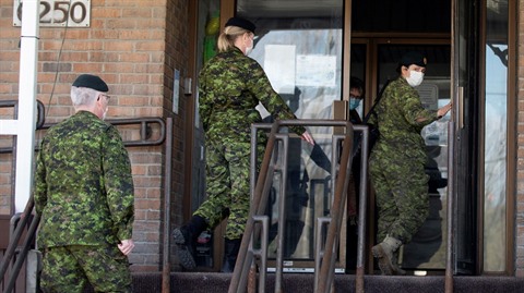Mercredi 22 avril, le gouvernement du Québec a demandé l'envoi de 1.000 militaires pour combler des postes d'infirmières et d'aides-soignants dans les Centres d'hébergement et de soins de longue durée (CHSLD) de la province, l'équivalent des EHPAD en France. Emboîtant le pas au Québec, province la plus durement touchée par la pandémie de coronavirus au Canada, l'Ontario a également demandé le renfort de l'armée dans cinq maisons de retraite sur les 128 infectées par le coronavirus. Au total, 4.000 personnes âgées ont été contaminées par le virus dans les maisons de retraite du Québec, foyers de plus de huit décès du coronavirus sur dix de la province.