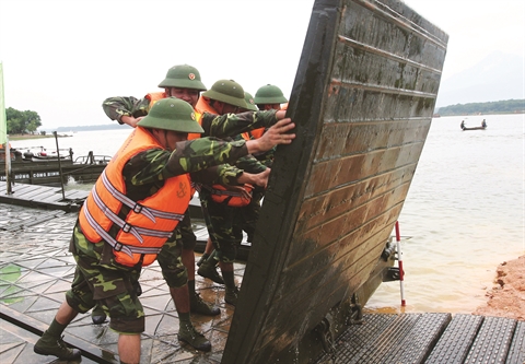 | Installer un pont flottant en prévisions de futures crues. Trong Duc/VNA/CVN |