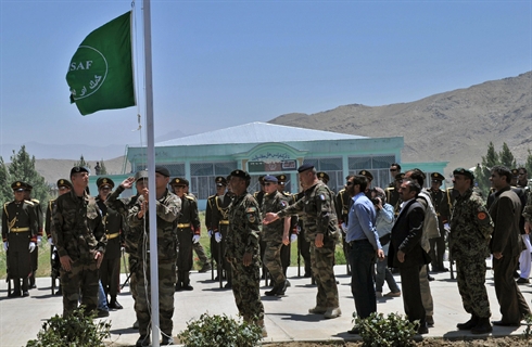 Le drapeau afghan y a été hissé sur un mât placé devant le siège des autorités provinciales, en remplacement de celui de la force de l'OTAN (ISAF), sous la bannière de laquelle sont déployés les soldats français).