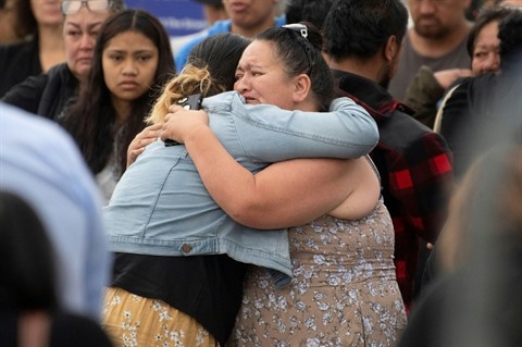 | Des membres de la famille et amis de victimes, de retour à Whakatane, après s'être rendus à White Island, le 13 décembre. |