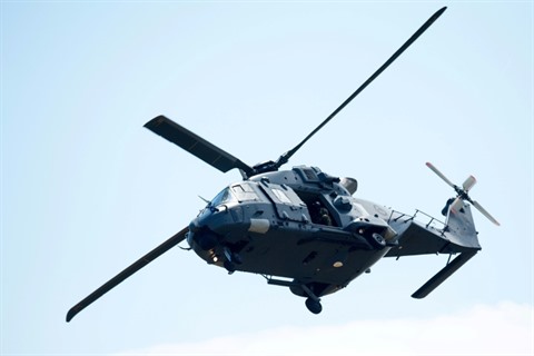 | Un des deux hélicoptères de l'Armée néo-zélandaise de retour à l'aéroport de Whakatane après une mission de récupération de corps de victimes sur l'île de White Island, le 13 décembre. |