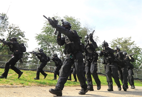 | Les soldats sud-coréens participent à un exercice militaire, le 4 septembre à Séoul. |