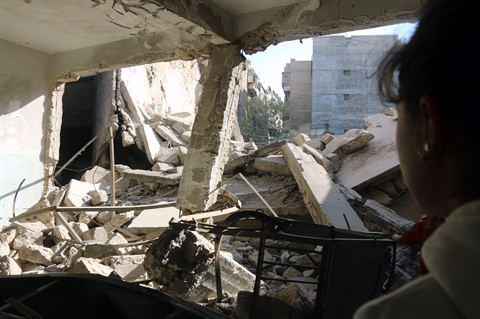 | Décombres d'un bâtiment détruit à l'est d'Alep, le 12 octobre. |