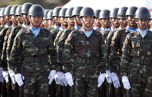 | Des soldats thaïlandais à Bangkok, le 18 janvier. |