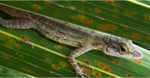 | Un lézard encore très répandu en Guadeloupe, sur une photographie transmise par le chercheur Corentin Bochaton. |