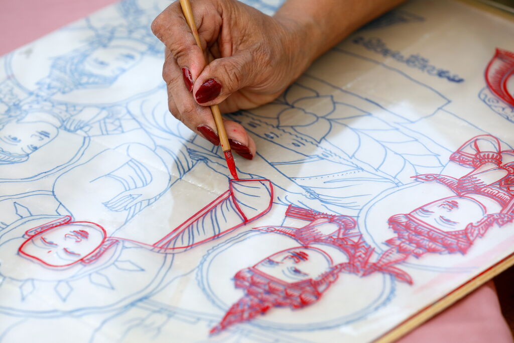 Des artisans qualifiés appliquent méticuleusement des couleurs vives sur des plaques de verre de différentes tailles. Il est remarquable que, bien que cette pratique soit ancestrale, les Khmers continuent de créer ces peintures sur verre entièrement à la main, sans recourir à aucune machinerie.