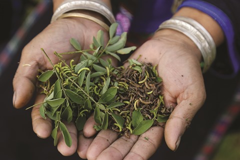 | Feuilles et graines de l’indigotier, principaux ingrédients des couleurs des costumes traditionnels des Nùng. |