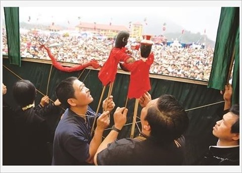| Les spectacles de marionnettes des Tày attirent un grand nombre de spectateurs. |