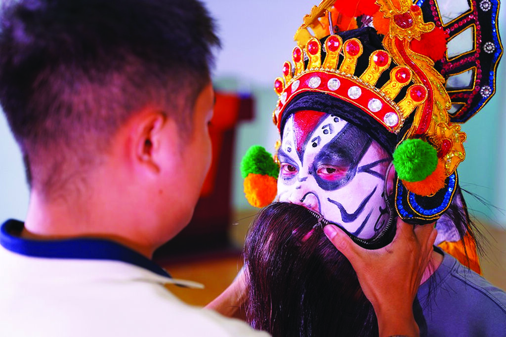 | Un jeune s’initie à l’art de maquillage du "tuông". |