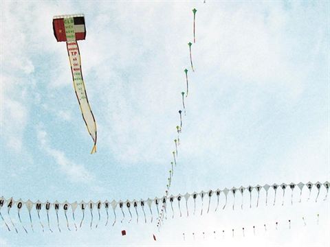 | Un cerf-volant de M. Vân aux couleurs des drapeaux français et vietnamien. |