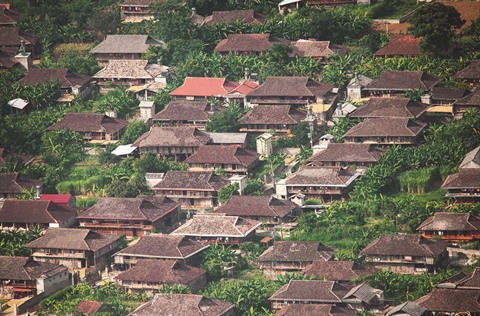 | Les tuiles +yin - yang+ sont souvent utilisées pour couvrir les maisons par les habitants de Bac Son et des régions voisines. |