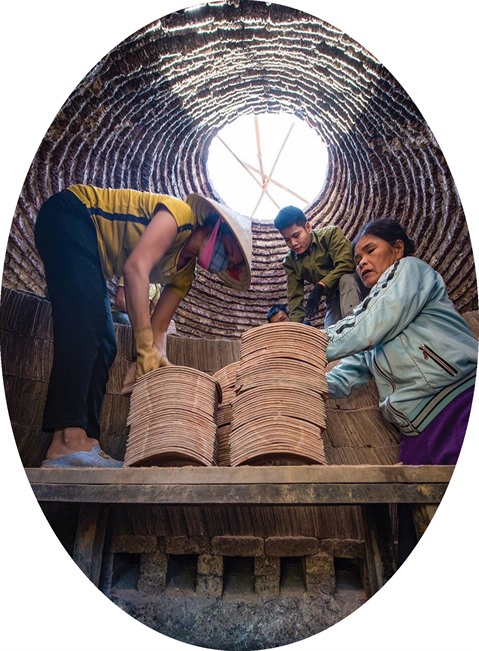 "On les appelle des +tuiles yin-yang+ à cause de leur pose sur le toit : il doit y avoir une tuile à l’endroit et une tuile retournée. Aujourd’hui, la plupart des membres de l’ethnie Tày vivent encore dans des maisons sur pilotis dont les toits ont été construits avec des tuiles de ce genre car celles-ci sont légères et protègent bien des pluies. À l’intérieur, il fait frais en été et chaud en hiver", explique-t-il.