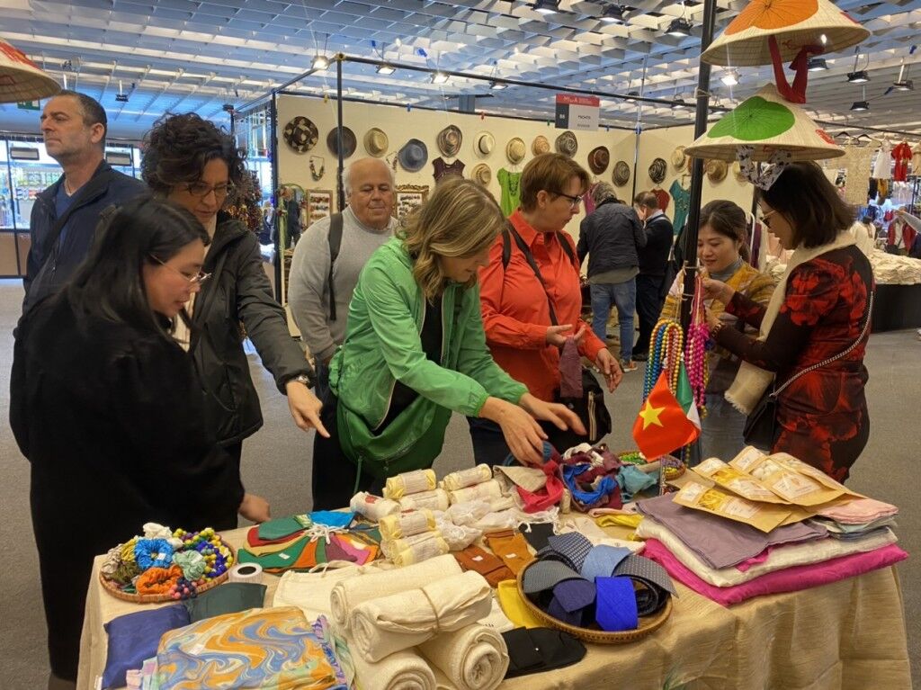| Visiteurs au stand vietnamien lors de la Foire. |