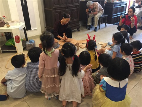 Dans le cadre de l’exposition, Lê Thiêt Cuong a invité l’artisane Nguyên Thi Thuy de Phù Lang (province de Bac Ninh, Nord) à révéler les secrets de l’art céramique de son village aux visiteurs qui ont été séduits aussitôt par ses mains habiles et gracieuses.