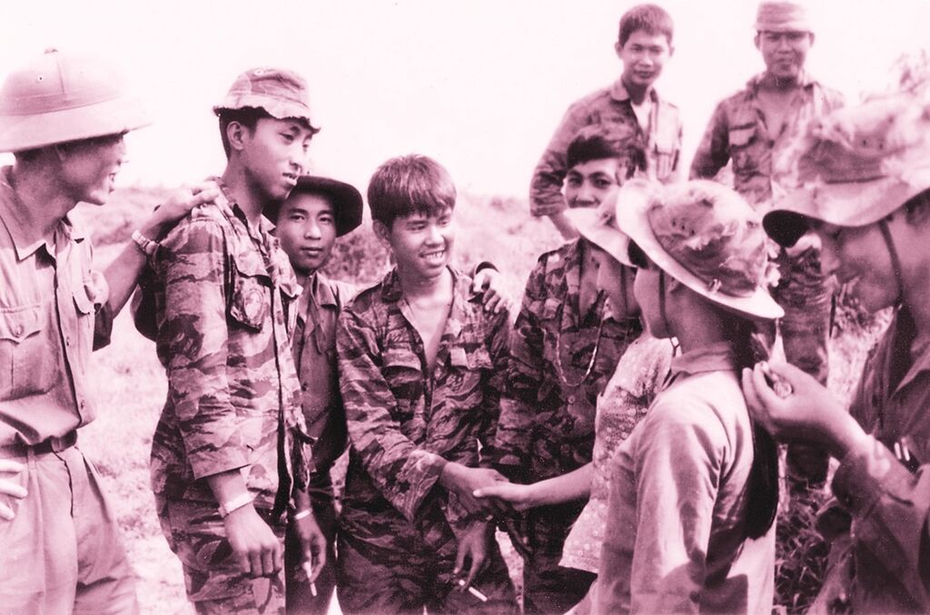 “À ce moment-là, j’ai réalisé qu’ils n’étaient plus des adversaires sur le champ de bataille, mais qu’ils étaient devenus des amis. Dans cette atmosphère, un soldat des autorités de Saigon a passé son bras autour de l’épaule d’un soldat de l’Armée de libération du Sud et m’a demandé : +Pourrais-tu prendre une photo de nous deux ?+ Après un instant de surprise, je les ai photographiés. C’est ainsi que la photo +Hai người lính+ est née. À partir de ce moment-là, je me suis dit que cette image était le symbole du désir de paix et que le jour où le Nord et le Sud seront réunifiés était probablement très proche”.