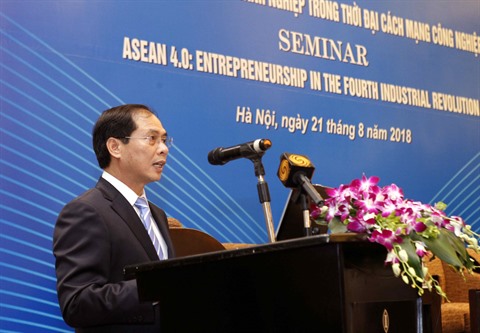 Bùi Thanh Son a expliqué que la quatrième révolution industrielle génère des changements profonds dans divers aspects de la vie sociale, avant de souligner que si les pays en développement créent un environnement favorable et créatif, ils auront l'occasion de progresser rapidement, durablement et inclusivement. Il a souligné les initiatives déployées dans plusieurs pays tels que la construction nationale intelligente de Singapour, le développement des incubateurs technologiques de l'Indonésie et la vision 4.0 de la Thaïlande.