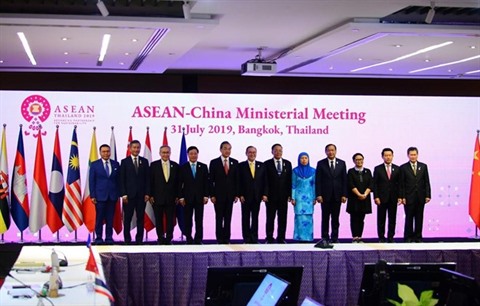 | Les ministres des Affaires étrangères de l’ASEAN et de la Chine prennent une pose lors de leur réunion, le 31 juillet à Bangkok. |