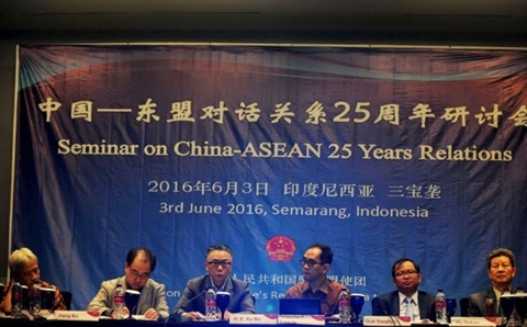 | L'ambassadeur de Chine auprès de l'ASEAN, Xu Bu (3eà gauche) au séminaire tenu le 3 juin à Semarang, en Indonésie |